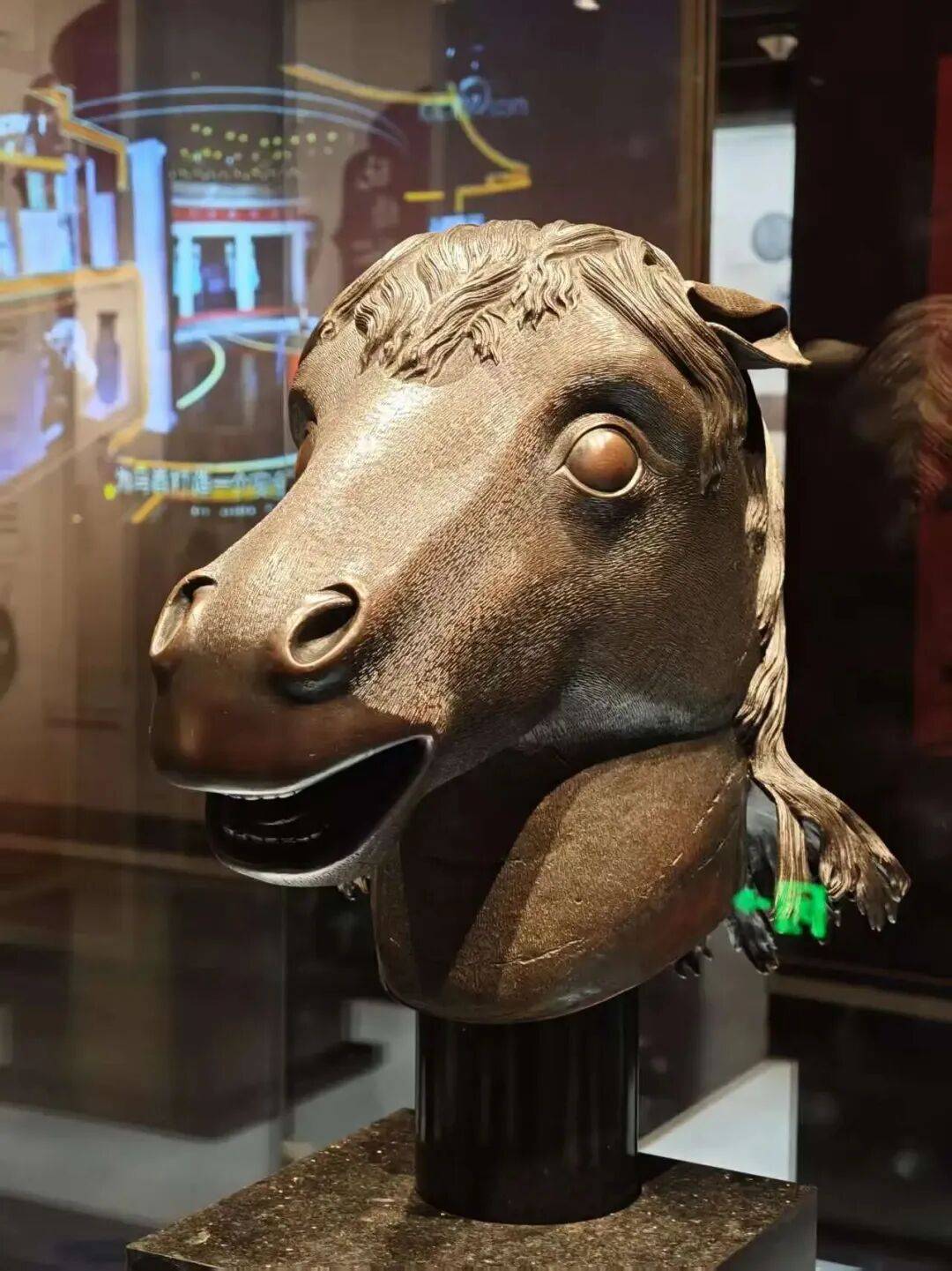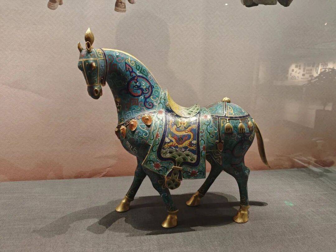 展览分为“鸿蒙生灵骏”“骁骑贯山河”“百艺载神驹”三大部分,以圆明园海晏堂马首铜像仿制品为核心展品,配合百余件马元素文物、工艺品、邮票等,通过追溯中华民族与马相依共生的悠久历史,细致梳理人与马从生存依赖到精神共鸣的互动历程,深入挖掘了马文化蕴含的忠诚勇毅、开拓进取、自由奔放等精神内涵,生动诠释了马文化所体现的中华文明多元一体格局。